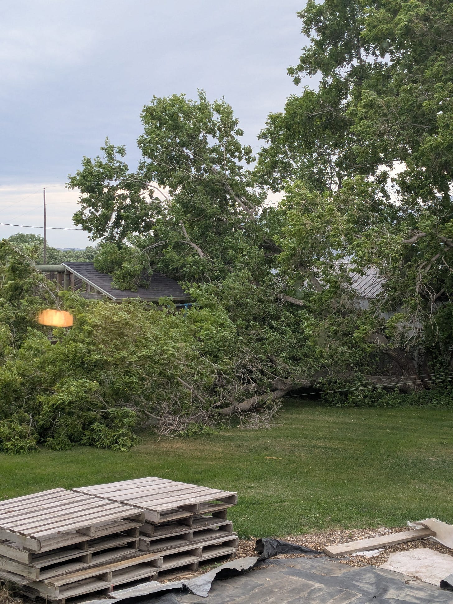 The day before the shower we cleaned up all the dead trees and branches in the yard, the next day we woke up to this.